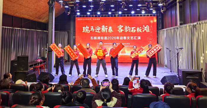 为喜迎新春,丰富居民精神文化生活,营造欢乐祥和的氛围。1月30日,石板滩老协在文化中心广场举办“瑞马迎新春·客韵石板滩”2026年迎春文艺汇演活动,有24个村(社区)、600余人参加。