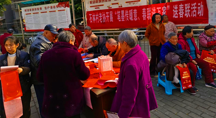 | 为弘扬中华优秀传统文化,营造喜庆祥和的新春氛围,充分发挥老年群体的社会价值,2月7日,石林村老年协会在活动广场开展“写春联、送春联”的惠民活动。现场上,群众欢声笑语、围聚欣赏书法技艺,石林村老年协会会长与书法老师挥毫泼墨,笔走龙蛇,将浓浓的新年祝福化作“春回大地换新颜,马跃神州添秀色”“平安如意年年好,人顺家和事事兴”等。一幅幅遒劲、墨香四溢的春联、福字,为即将到来的马年增添了浓厚的文化韵味。 群众细心挑选心仪的对联内容,或请书法老师即兴创作,脸上洋溢着幸福的笑容。志愿者把春联和福字送到本村高龄、特殊困难老人家里,让他们感受到村两委的关怀与节日的温暖。最动人的情景是老书法者与“小书法家”携手互动,老师耐心指导孩子们执笔、运腕、架构,生动诠释了“老有所教”的奉献精神,孩子们认真书写赢得了大家的赞叹;“孩子们像雏鹰展翅飞翔!又像鲜花灿烂开放!” 本次活动,为新年增添了文化色彩,搭建了老年群体与群众、儿童互动的桥梁,让老年人在服务社会中实现了老有所为的价值追求。同时将温暖祝福送到群众心坎上,增强了乡村的凝聚力与向心力,为新春佳节增添了浓浓节日氛围。 |
