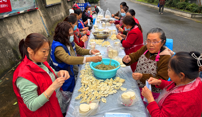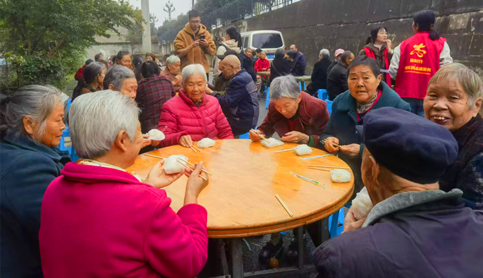 |       岁岁重阳,今又重阳。为深入弘扬中华民族敬老爱老的传统美德,破解部分老年居民节日“独居冷清”难题,进一步拉近邻里间的情感距离,10月29日上午,高筒社区居委会携手维民社会工作服务中心在社区老年中心广场组织开展“巧手包水饺・重阳乐融融”主题活动,近200名居民欢聚一堂,在面粉与馅料的香气中,共庆重阳佳节。 活动筹备阶段,社工提前通过居民微信群发布通知,还专门邀请行动不便的高龄老人参与;考虑到老人饮食需求,特意准备了饺子与发糕两样美食,现场还设置了临时休息区,摆放着热水、纸巾等,细节处尽显贴心。 活动开场后,广场上的四张长桌有序分工,社区志愿者组成专门包饺子小组,熟练地揉面、擀皮、包馅,指尖翻飞间,一个个造型规整的水饺快速码满托盘;居民们围坐一旁,或与志愿者交流包饺子技巧,或分享生活趣事,原本互不熟悉的邻居在轻松氛围中渐渐熟络,不时传来阵阵笑语。志愿者还特意放慢节奏,邀请有兴趣的老年居民参与体验,手把手教学,让大家在动手过程中感受乐趣。 待水饺包满十余盘,工作人员立即烧水煮制。“下饺子喽!” 随着一声吆喝,雪白的水饺下锅,不一会儿便浮起水面,外皮晶莹剔透,香气四溢。志愿者们分工明确,有的用漏勺捞起水饺沥干水分,有的仔细分装到一次性餐盒,还不忘叮嘱 “小心烫”;对于行动不便的老人,志愿者直接将热饺子送到座位上,蹲在一旁陪老人聊天。85岁的李爷爷咬了一口饺子,眼眶微红:“孩子们都在外地,本来以为今年重阳就自己过了,没想到社区这么热闹,这饺子比家里的还香!” 此次活动以“水饺”为情感纽带,不仅让居民在互动中感受了传统节日的文化魅力,更用“流水席”的热闹驱散了老年居民的孤独感,搭建起邻里互助、情感交流的坚实平台。  |