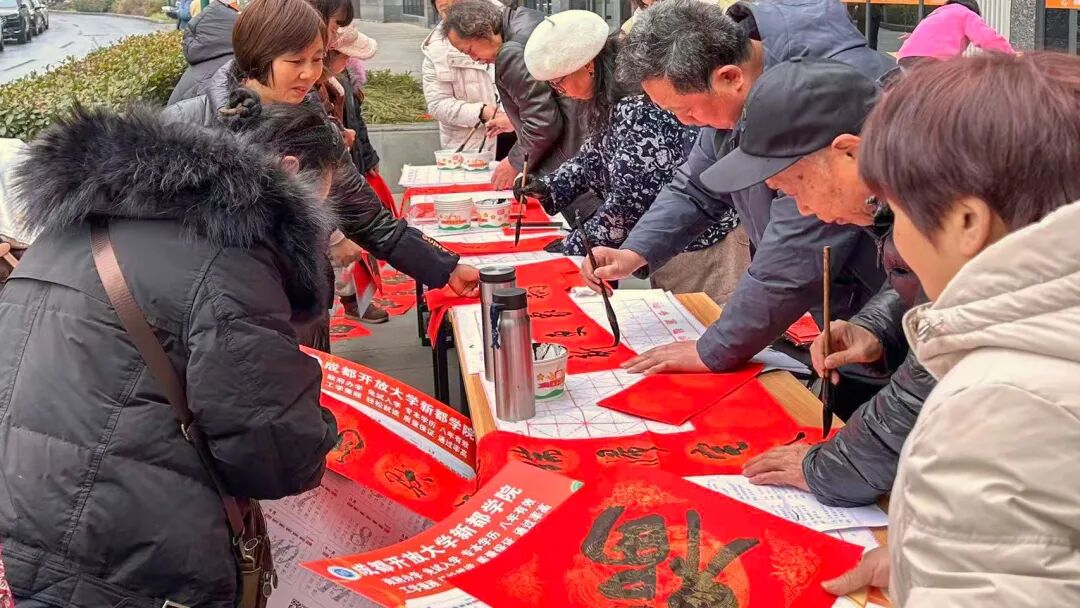 | 2026年2月2日至7日,新都区社区文化发展中心、新都社区教育刘昌力名师工作室开展以“墨香迎马岁春联送万家”为主题赋能2026新春文化惠民的免费送春联公益活动,组织书法家走进企业、学校、社区、乡村,旅游景点、居民文化活动聚集点,为市民群众送上新春文化祝福。 在中国银行、桂湖街道、成都开放大学新都学院、沱江社区、泗义村、绛樱院景区、区新时代文明实践中心等地点开展,累计共开展15场次,实现企业、学校、街道、社区、乡村、旅游景点、居民文化活动聚集点全覆盖,组织区内知名书法家参与书写。活动现场墨香四溢,书法家们挥毫泼墨,写下一幅幅饱含马年期许的春联与福字,联语寓意吉祥,笔墨遒劲有力,将年味与祝福凝于红纸之上。 现场群众参与热情高涨,居民或挑选春联、或定制专属祝福,家长还带着孩子观摩感受书法魅力,不少居民称赞手写春联更有温度与灵气。书法家们耐心满足群众需求,志愿者则贴心提供铺纸、递墨等服务,现场暖意融融。此次活动累计送出春联4000余幅、福字2000余个,书画作品100余幅,覆盖企业职工、市民群众以及学生数千人,不仅丰富了群众的精神文化生活,更让书法艺术走进基层,传承弘扬了中华优秀传统文化,彰显出社区教育的温度与力量。 作为新都区社区文化发展与社区教育骨干力量,新都区社区文化发展中心、新都社区教育刘昌力名师工作室始终坚持以文化人、以文惠民,常态化开展传统文化公益活动。下一步,中心与工作室将继续依托新都区文化广电体育和旅游局、新都社区教育学院等平台优势,发挥名师引领作用,开展更多形式多样的传统文化公益活动,把优质文化服务送到群众身边,为新都社区教育高质量发展、建设幸福香城注入文化活力。 |